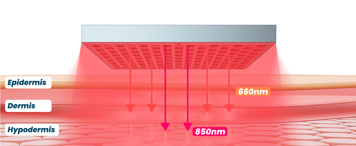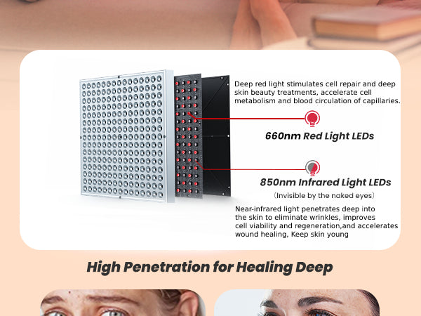 - 850nm wavelength near infrared light (invisible) penetrates deeper to reach your bones, tissues, organs and joints, enhancing muscle recovery and reducing inflammation and joint pain.